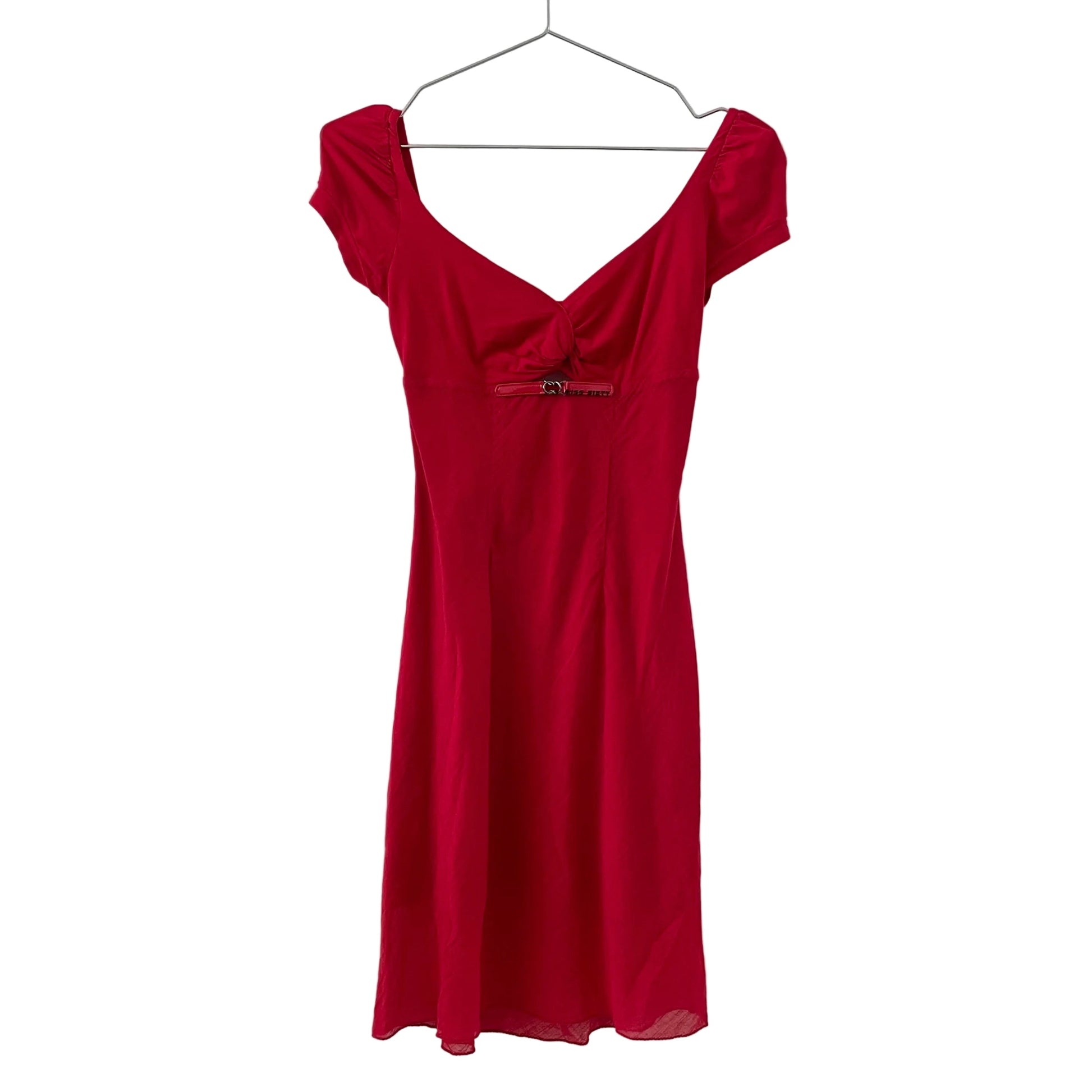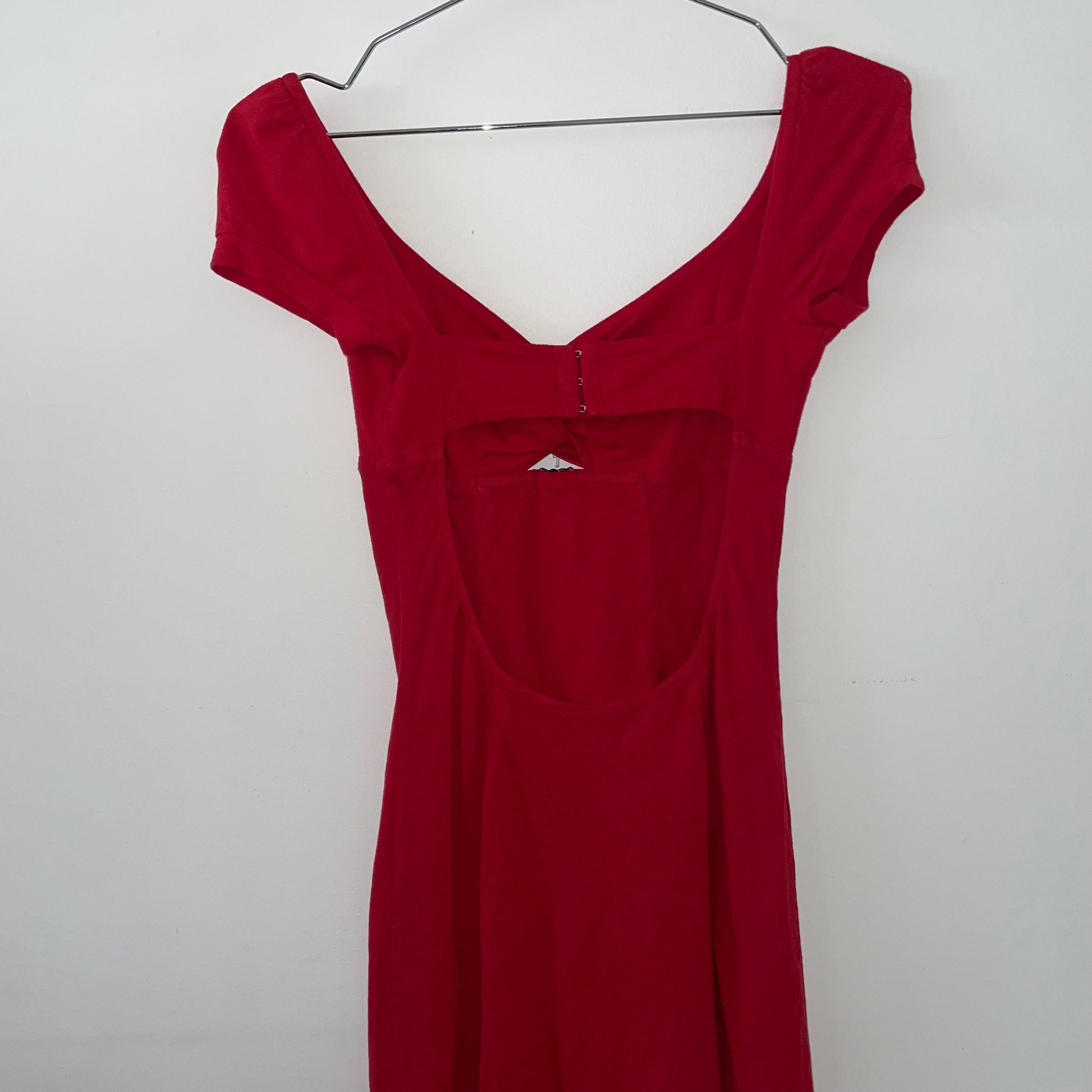 Made in Italy, 2000s archive open back red midi dress, metal buckle front, fully lined