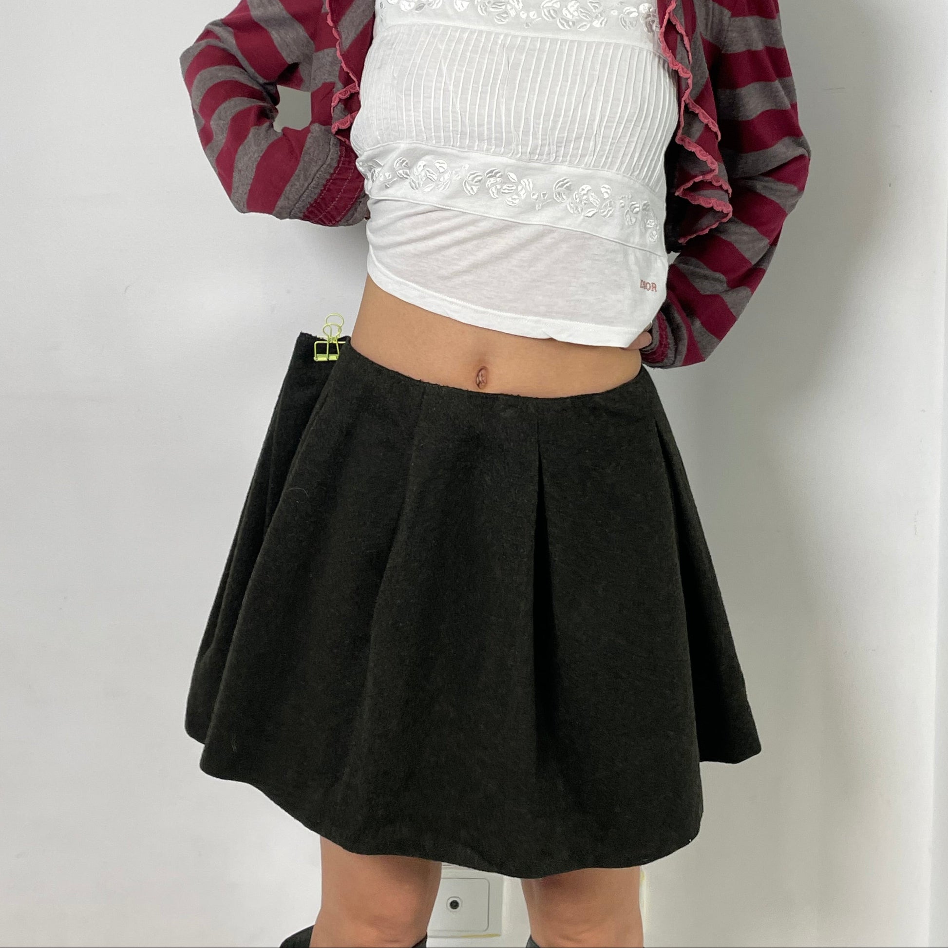 Made in Italy 100% Wool Khaki Bubble Skirt
